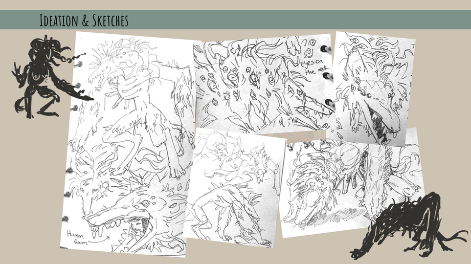 I had a very clear idea from the beginning but I started with a lot of ideation sketches to find the exact proportions I was looking for. Then it was figuring out its anatomy/transformation phases and seeing how much more twisted I could make it from there.